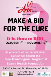 Each October, The Stanly Arts Guild donates items for silent auction to raise funds to support local free mammograms.