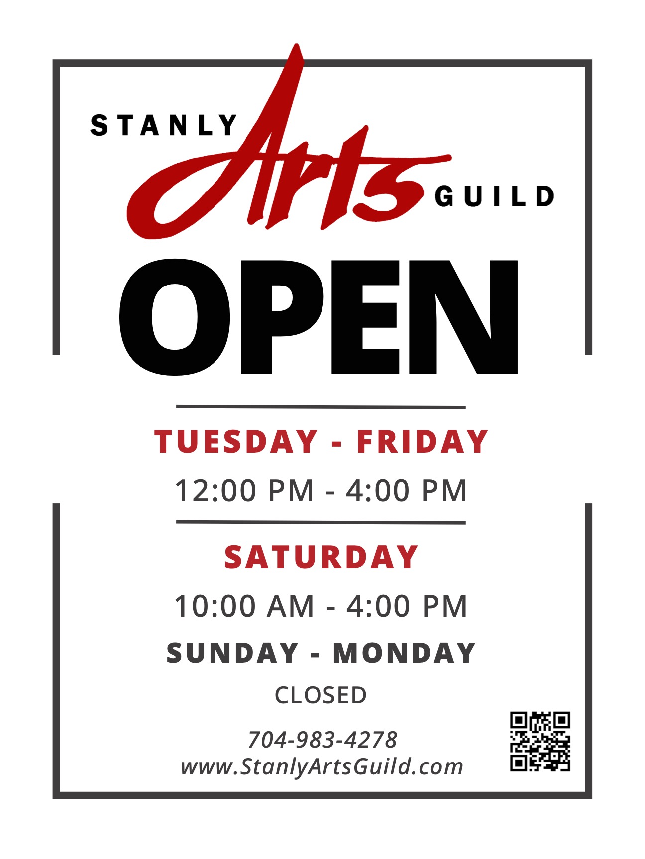 Starting November 1st, we are changing our store hours a little bit. We will now be open on Tuesdays, and extending hours on Saturdays. We hope to see you soon!!