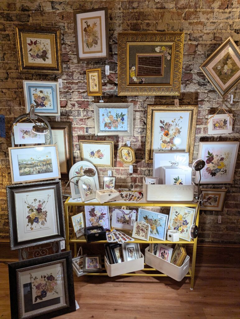 After taking a break from exhibiting, Joan felt the familiar pull of creativity and returned to her craft with renewed passion. Using flowers grown here in Stanly County, she is delighted to once again bring her pressed flower art to the community.
