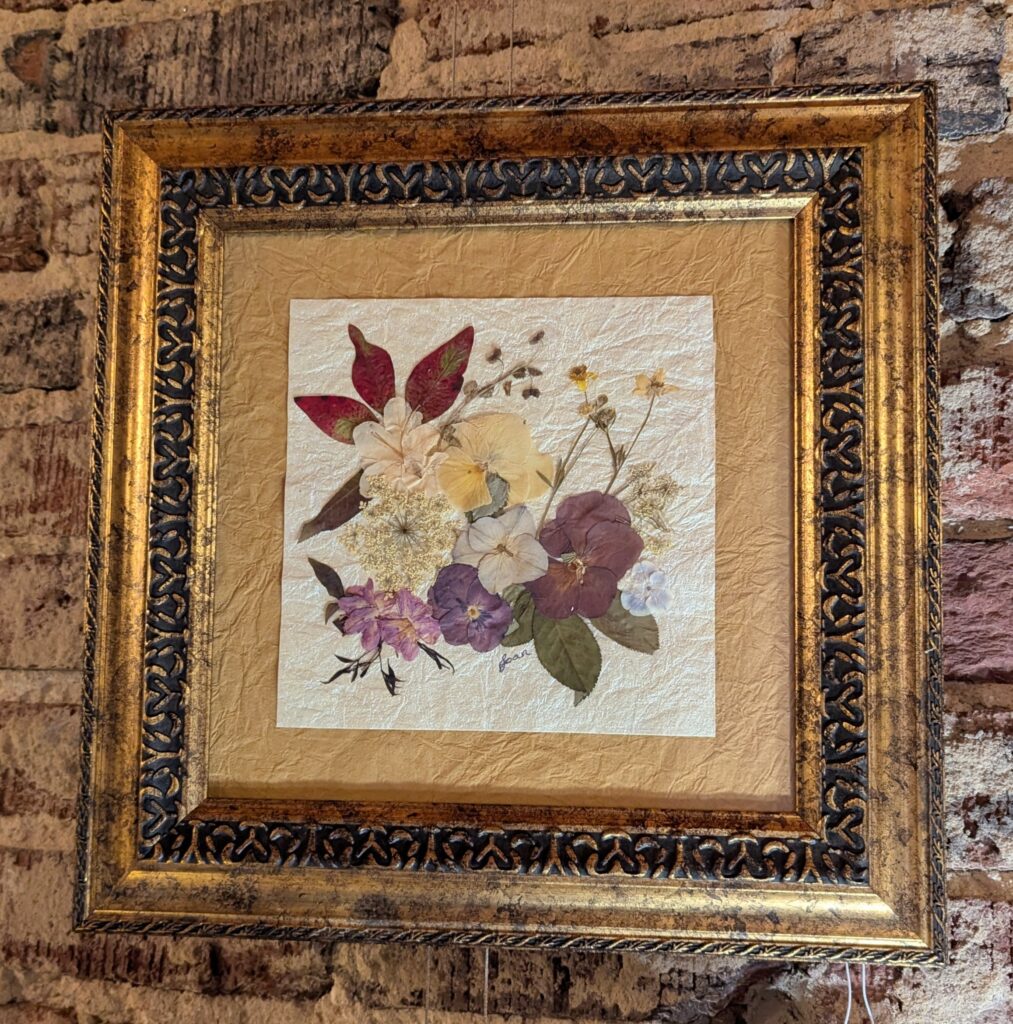 Joan’s love for pressed flowers began in 1972, when she first discovered the joy of preserving nature’s delicate beauty. Over the next three decades, she shared her intricate floral creations at craft shows throughout the eastern United States, earning admiration for her eye for detail and her gentle, nature-inspired style.