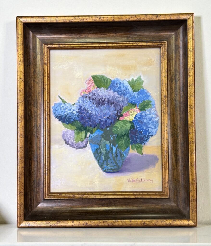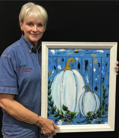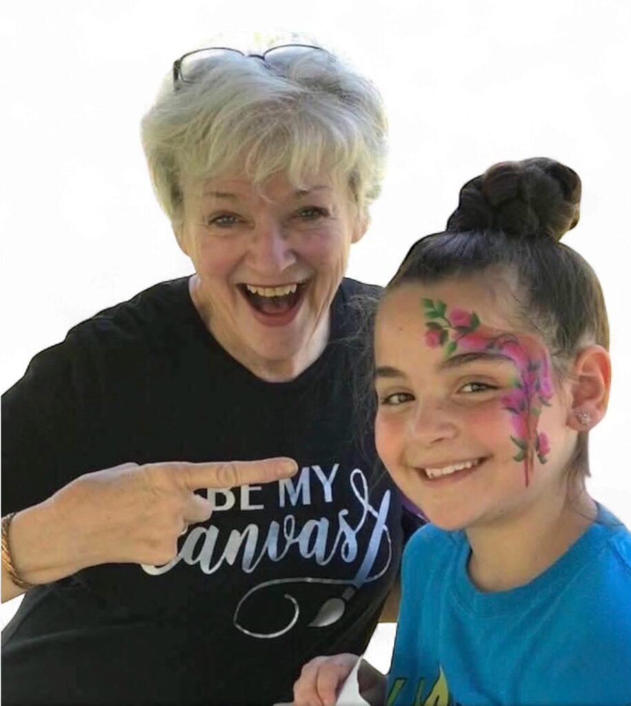 Vicki is best known for her one-stroke painting creations on all types of media – glass, wood, furniture, purses, paper bags, humans, etc. She is also a very talented face painter who is in high demand at many events in the area.